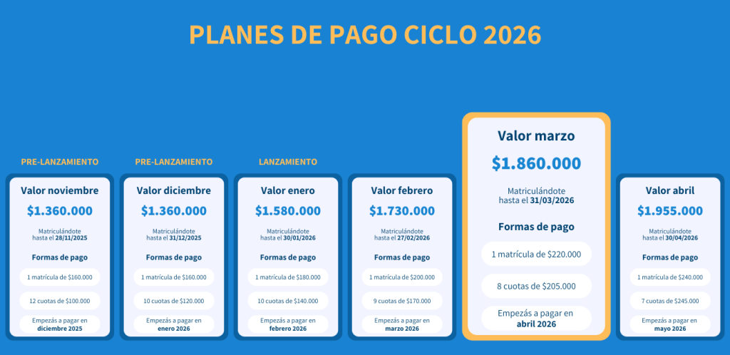 Precio y formas de pago hasta el 31/03/2026